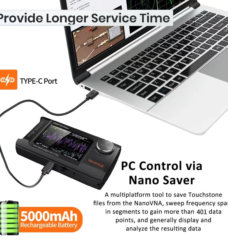 • PORTXVNSA NanoVNA-H4 PLUS Vector Network Analyzer Upgrade 2.7GHz 4 Inch IPS LCD Touch Screen Portable Handheld Professional Antenna Analyzer
