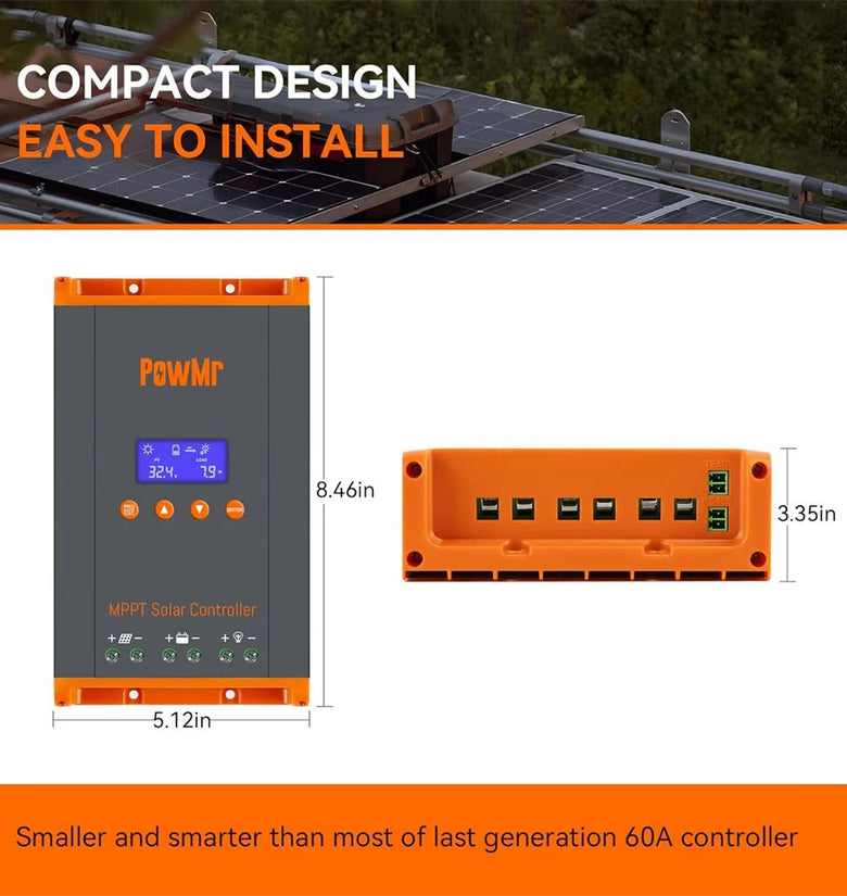 • PowMr HHJ60-PRO MPPT 60A Solar Charge Controller Solar Panels Regulator 12V 24V 36V 48V Parallel Up 12 Units For Lead Acid Lithium Battery