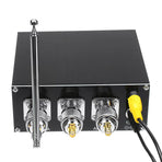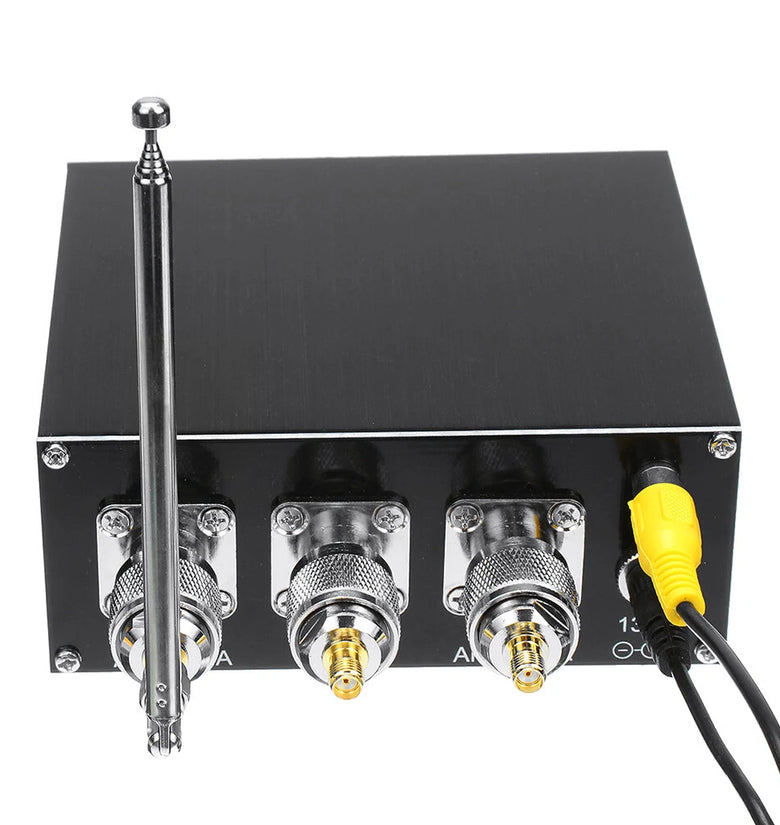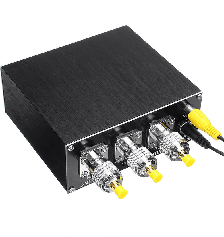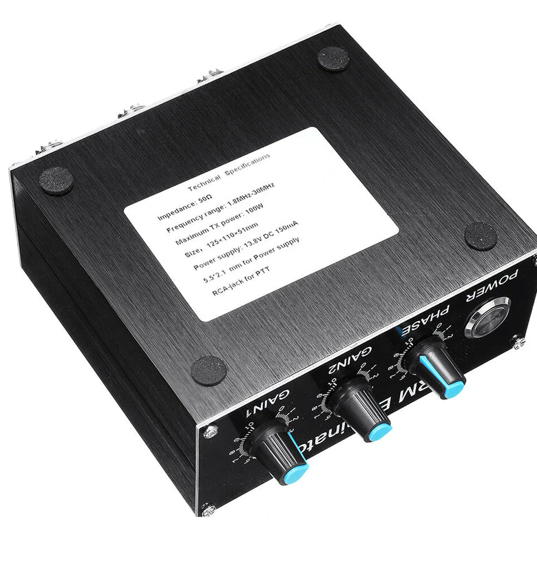 The QRM canceller is inserted into the feeder of the antenna from thetrx without any other modifications to the radio. The box has a built-in PTT control to keep the canceller connected during transmission. However, an additional auxiliary receiving antenna is required, such as a 2m antenna or only a few meters of wires in a shed. The two antennas receive unwanted signals, resulting in different phases. The QRM canceller now allows adjustment of the phase angle and amplification to cancel out unwanted signals before they reach the front end of the receiver! It is based on a completely innovative concept and cannot be compared with the normal 'silencer' performance.