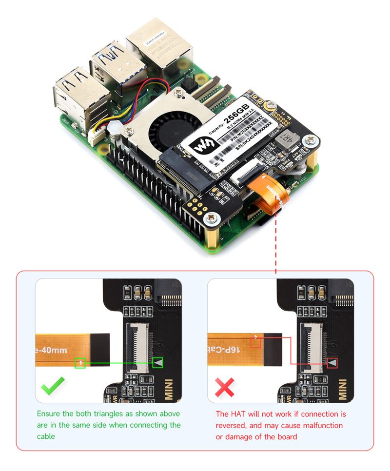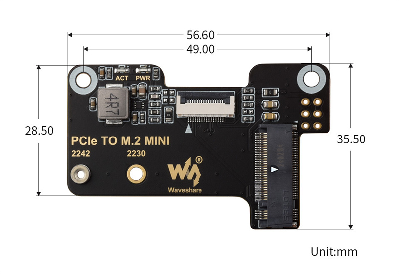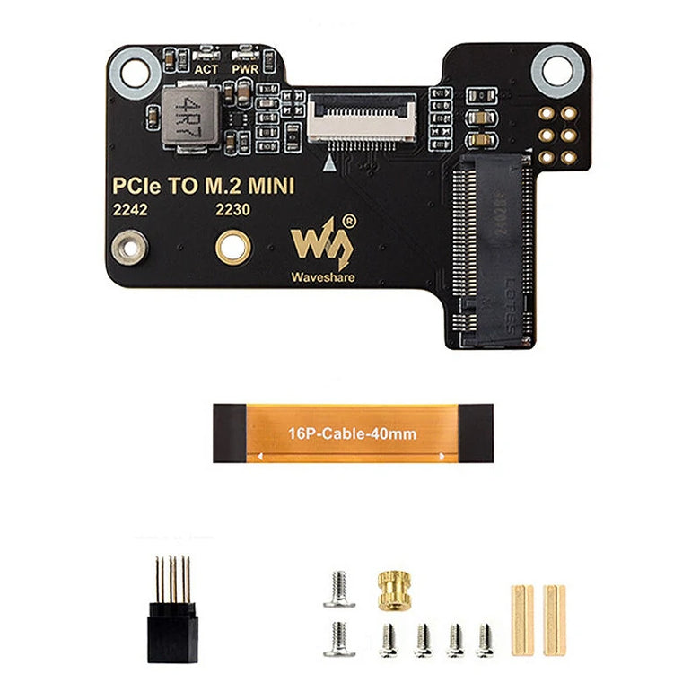 Mini PCIe TO M.2 adapter for Raspberry Pi 5, supports NVMe Protocol M.2 solid state drive with high-speed reading/writing, compatible with M.2 solid state drive in 2230 / 2242 size, supports Gen2 and Gen3 modes, and supports booting PI5 from SSD.