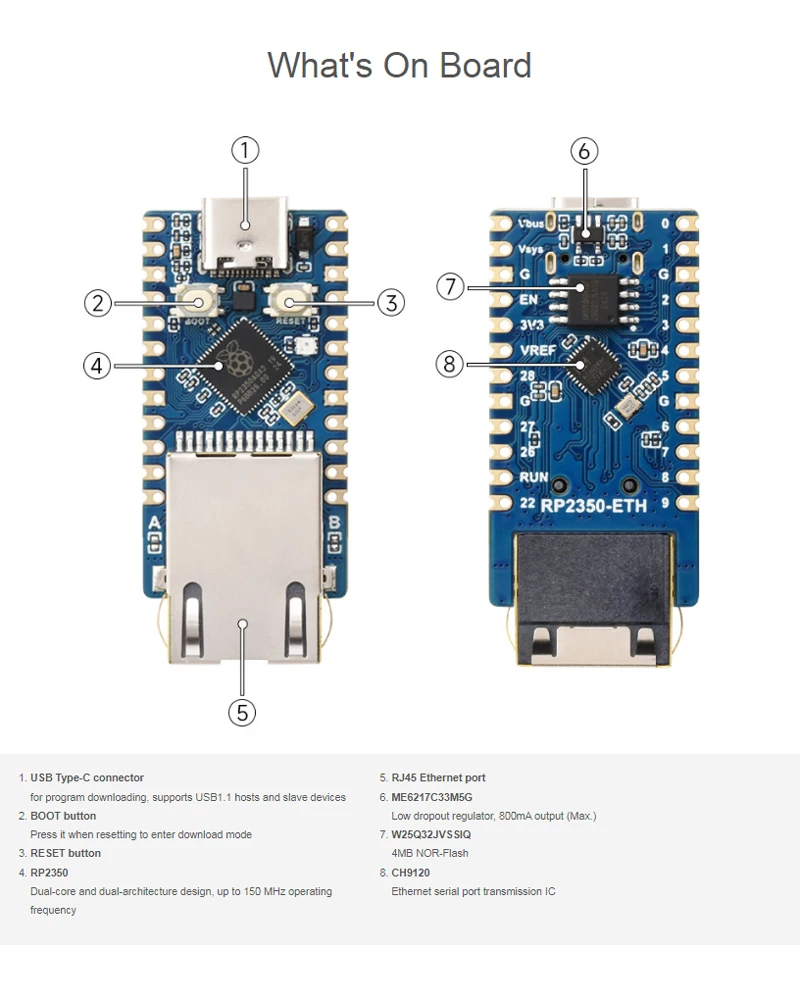 • Raspberry Pi Pico 2 RP2350-ETH Mini Development Board RP2350 Ethernet Port Module RP2350 Dual Core Processor