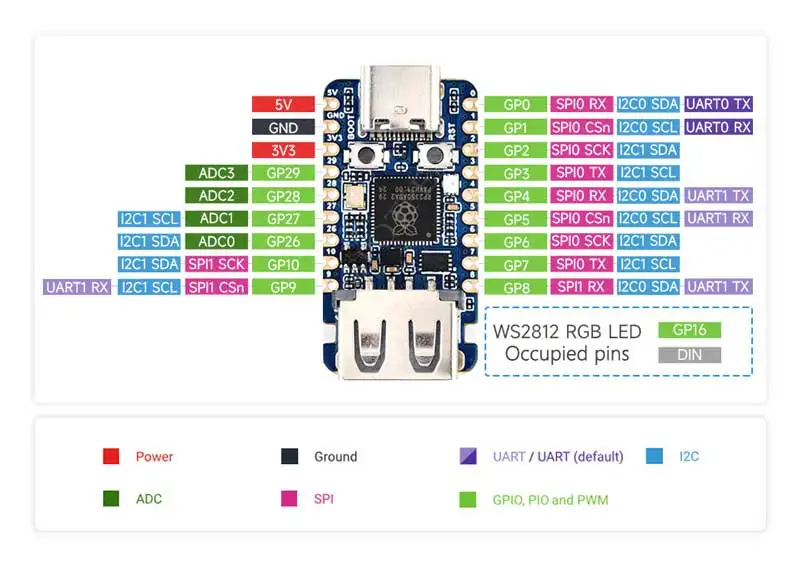 10. RP2350A's 15 GPIO pins are brought out.
