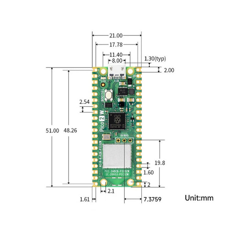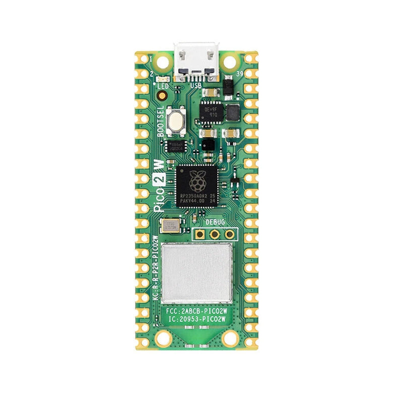 Raspberry Pi Pico 2 W is a low-cost, high-performance microcontroller board with flexible digital interfaces. Upgraded hardware from Pico 2 with wireless communication, onboard antenna, features 2.4GHz 802.11n WIFI and Bluetooth 5.2.