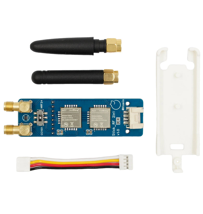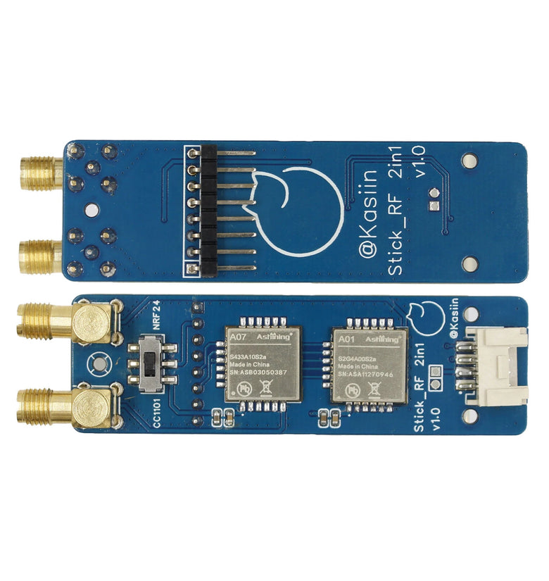 Key Features:Dual-module design: Supports both NRF24 (2.4GHz) and CC1101 (433MHz) communicationTailored for M5Stack StickC Plus, plug-and-playBruce firmware compatible, no complex setup requiredHigh-performance RF communication for reliable data transmissionPhysical switch for easy module selection