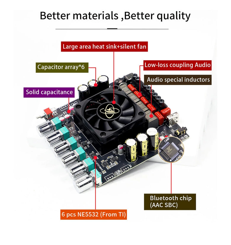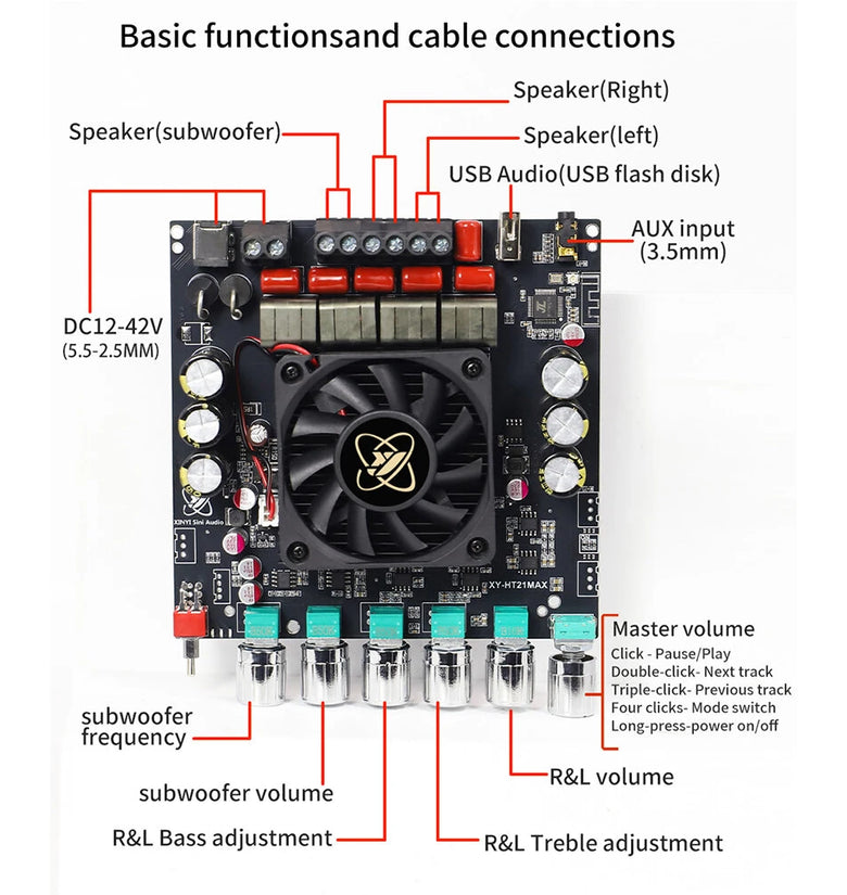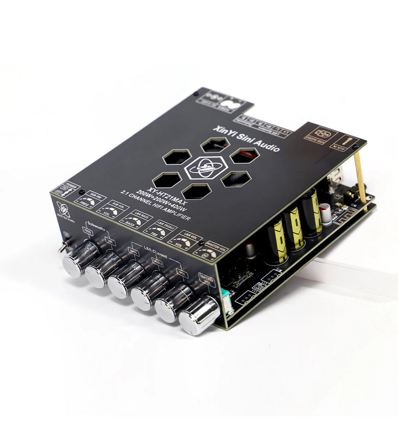 Features:1. High Power Output Design: The XY-HT21MAX amplifier delivers up to 200W+200W for stereo R&L channels and up to 400W for the subwoofer, ensuring exceptional audio clarity across a wide range of compatible speakers.