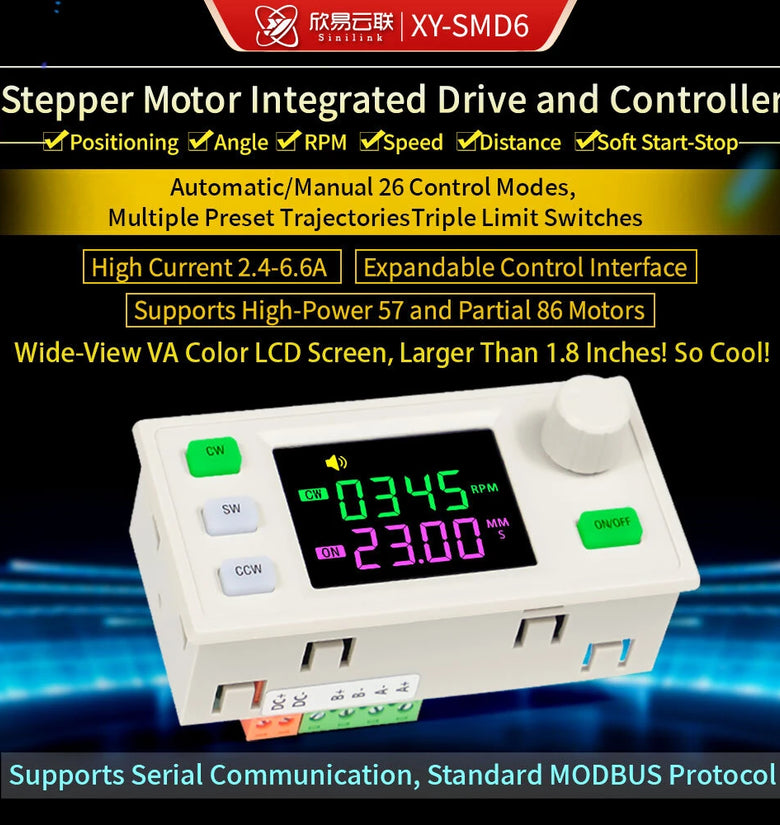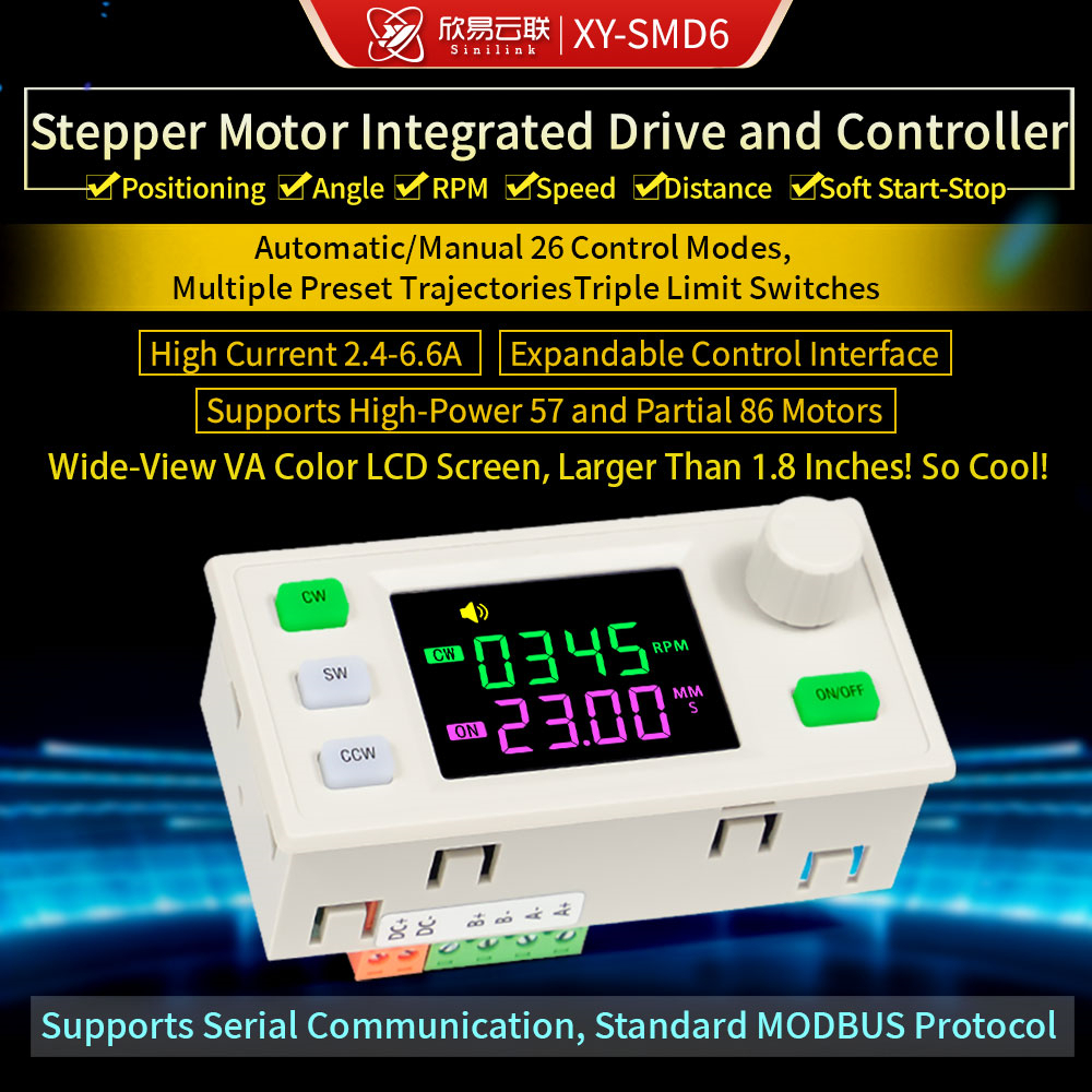 • Sinilink XY-SMD6 Stepper Motor Driver Single Axis Control DC 10-30V 6.6A TTL Serial MODBUS High Precision Microstepping for 42 57 Motors Forward and Reverse Control Driver Angle Pulse Speed PLC Serial Communication