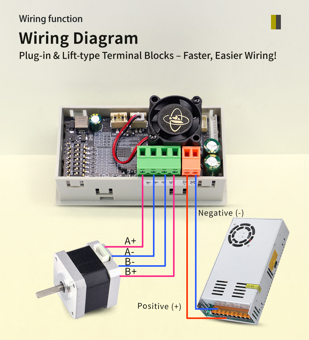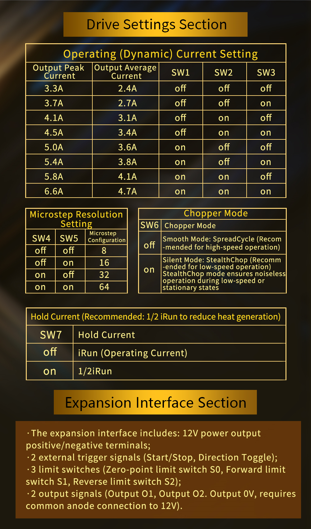 2. High Precision Control: Pulse frequency ranges up to 80,000Hz with microstepping options (8–64 microsteps), providing fine and accurate motor adjustments.