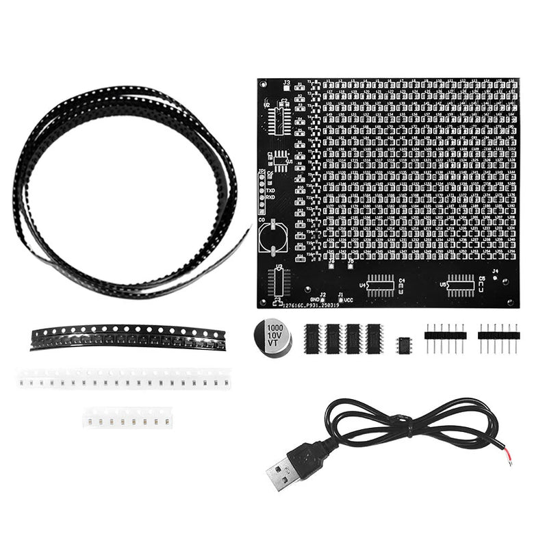 The kit consists of 256 0805 SMD LEDs to form a display unit. It can display 256 pixels, such as Chinese characters, by row and column scaimiiig.