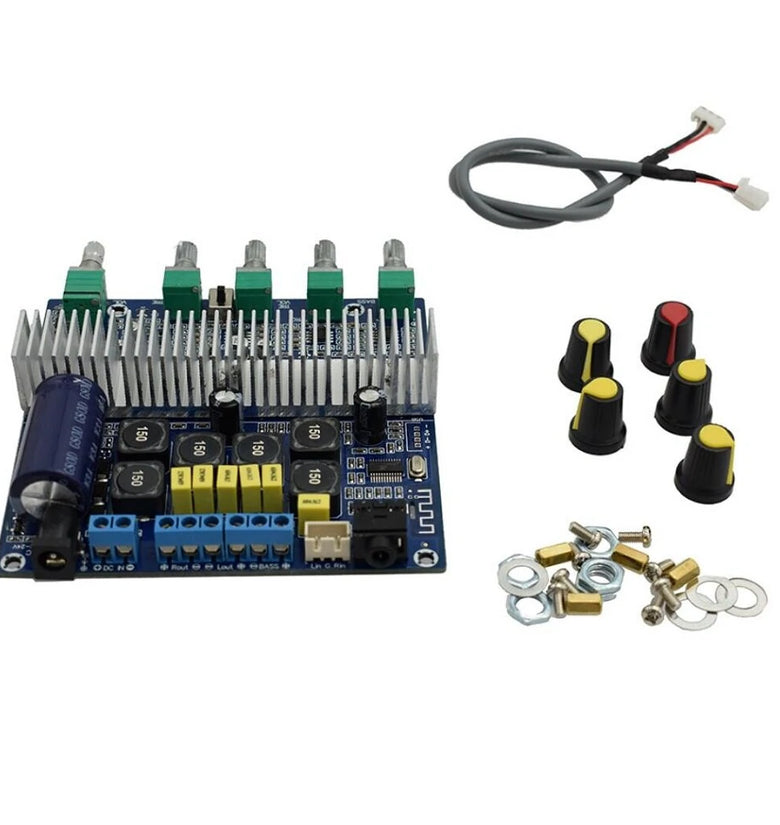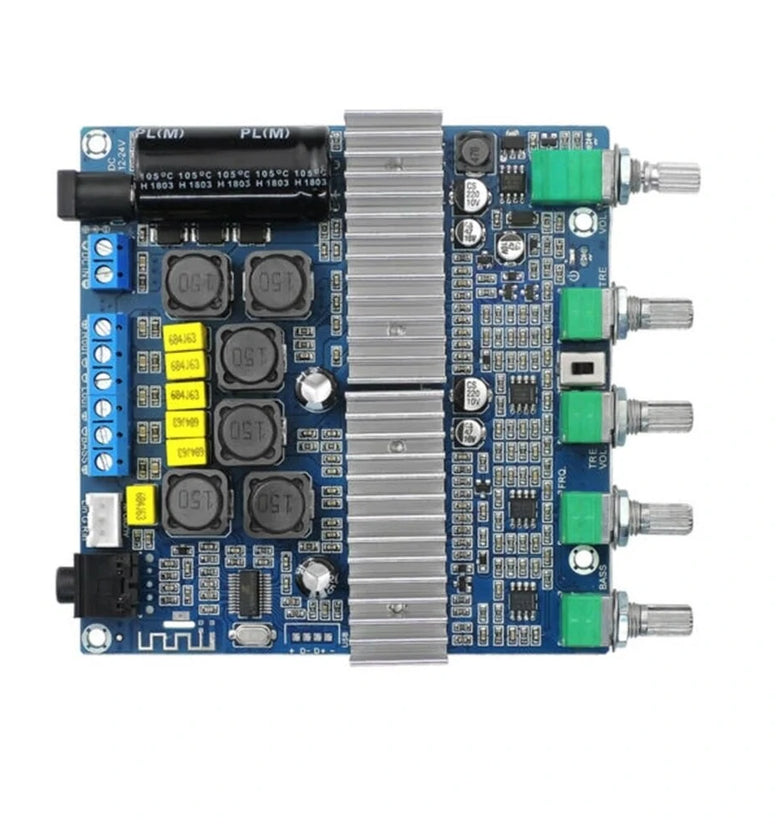 This is a support Bluetooth 5.0 audio receiver Updated, with a pre-amplifier, Bass crossover Processing. With bass, left and right channel volume adjustment, treble adjustment, the total volume potentiometer control 2.1 amplifier board.