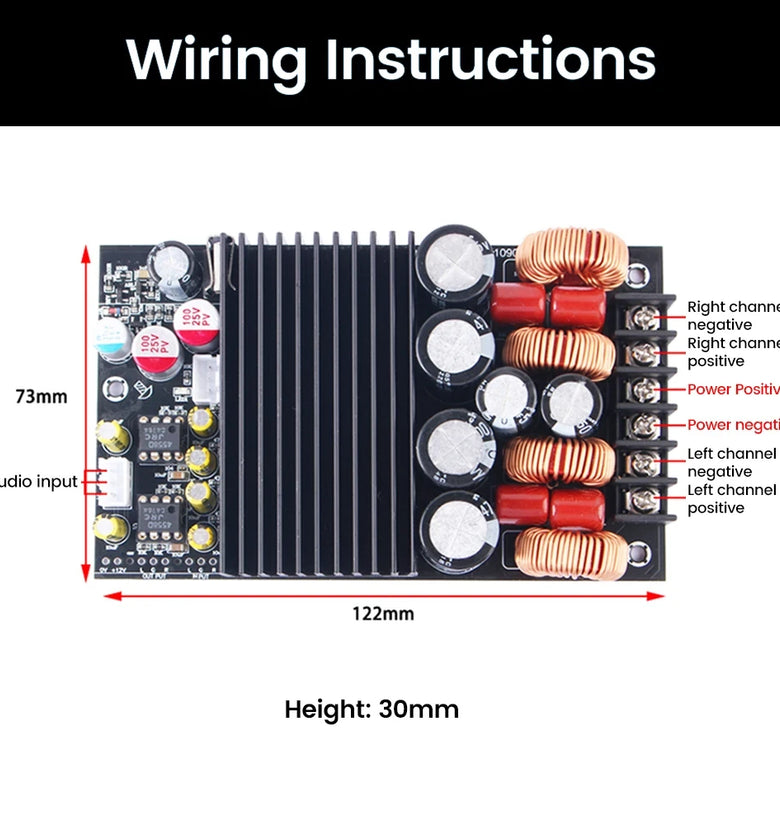 Measuring at just 122mm x 73mm x 30mm, this amplifier module offers powerful output without sacrificing portability or space efficiency.