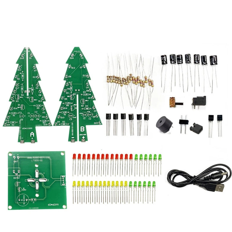 • Tri-color/Colorful Straight-leaf Christmas Tree Standard/Music Version DIY Electronic Kits