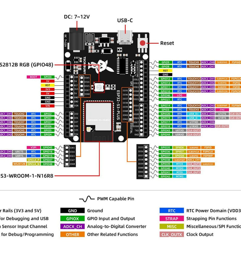 TSCINBUNY ESP32-S3 Core Board onboard WiFi bluetooth Control Motherboard ESP32-S3-Plus Module Development Board IOT Training Kit