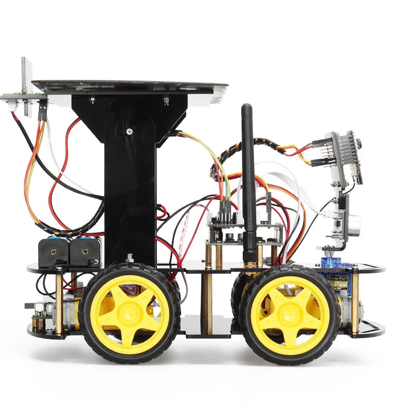 Features:1. Multi-function: three-way tracking, ultrasonic obstacle avoidance and following, camera transmission image function, Control camera lighting PTZ function; WiFi cell phone/PC video remote control cart function (external antenna); 5V solar charging real-time voltage monitoring function.WiFi cell phone/PC video remote control function (external antenna enhanced version); 5V solar charging real-time voltage monitoring function.