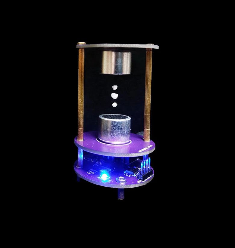 This is a mini ultrasonic levitation device that can suspend foam balls. The device consists of a single chip microcomputer, a driver chip and two ultrasonic probes. Mainly used for students or DIY electronics enthusiasts to learn about ultrasonic standing wave suspension. Controlling the up and down movement of suspended objects is not currently supported.