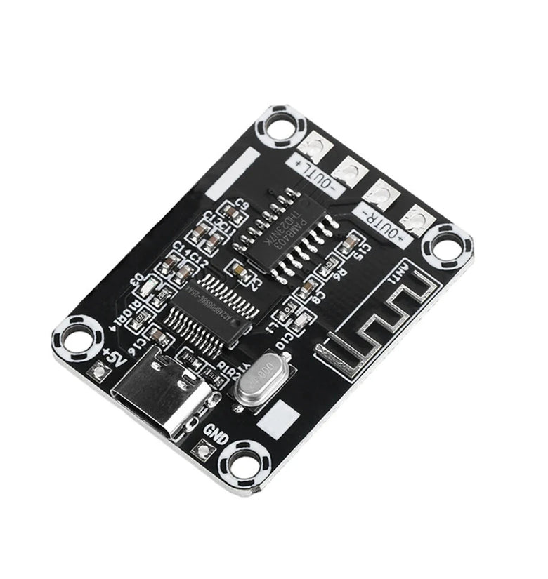 1. TYPE-C Power Supply Port: Equipped with a modern TYPE-C power supply port, this amplifier board supports dual 5W bluetooth amplification, ensuring reliable and efficient power delivery from various sources, including power banks and fast chargers.