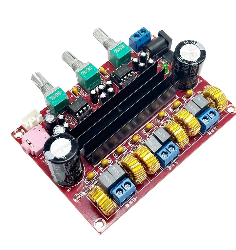 The two TPA3116D2 digital amplifier chips provide high efficiency and can output up to 50W*2 for the left and right channels and 100W for the bass. This robust power output ensures that your audio signals are amplified effectively, providing loud and clear sound.