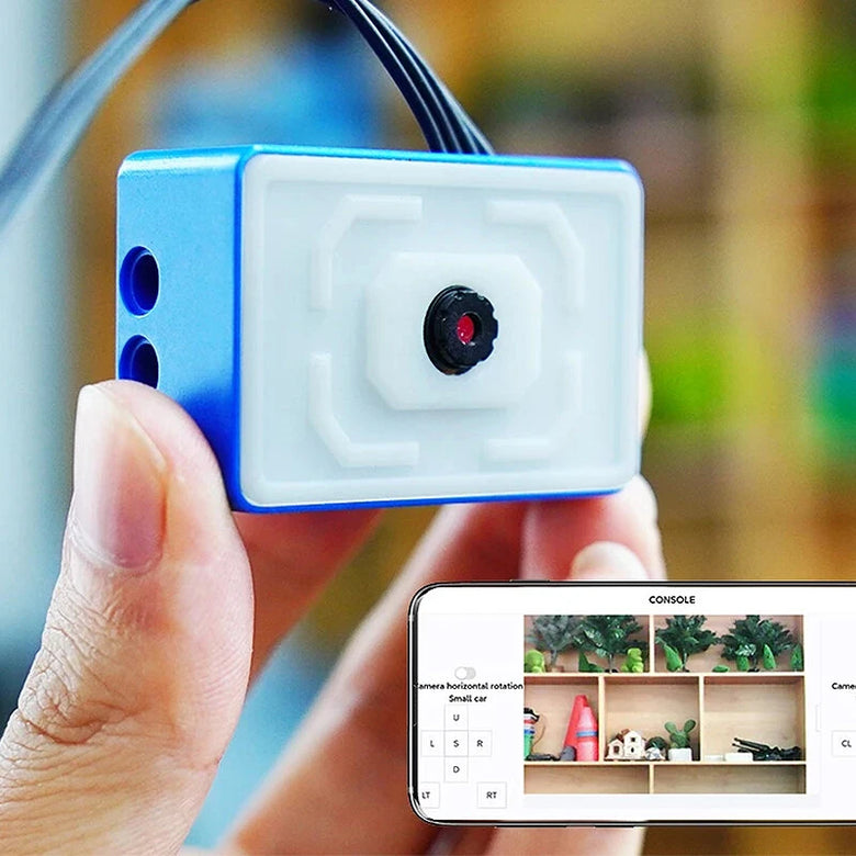 2. Built-in ESP32-S3 chip and 2MP camera, external blue and white ABS plastic case, compatible with building block parts.