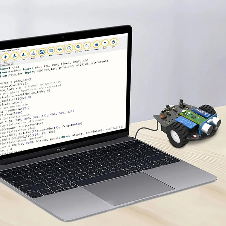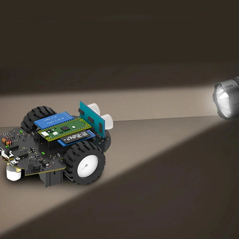 Raspberry Pi Pico robot is a compact and cost-effective educational programmable 2WD smart car. It is based on Raspberry Pi Pico, and uses the MicroPython as programming language, combined with on-board sensors, many interesting functions are realized. This robot possess an infrared receiver and a bluetooth module, so the user can remotely control it through the infrared remote control or mobile phone APP. We reserve the servo interface, IIC interface, and common pins on the expansion board, which is convenient for users to expand more functions. In addition, we will provide a large number of tutorials and source codes. All in all, this is a good platform for programming beginners, programming education institutions or primary education.
