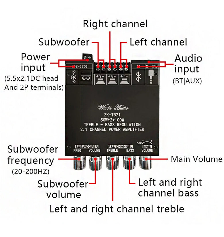 About the speaker type: commonly used speakers are generally 4-8 ohms, can be used.Speakers in left and right channels need to be connected to full frequency or medium and high frequency speakers with power between 20W and 100W.Subwoofer speakers cannot be connected to ordinary speakers. Speakers with subwoofer speakers should be connected, with power between 20-100W.The subwoofer horn must have a dive frequency of at least 50Hz.