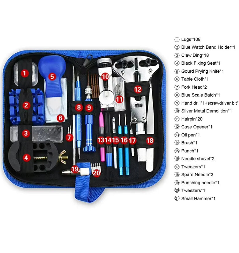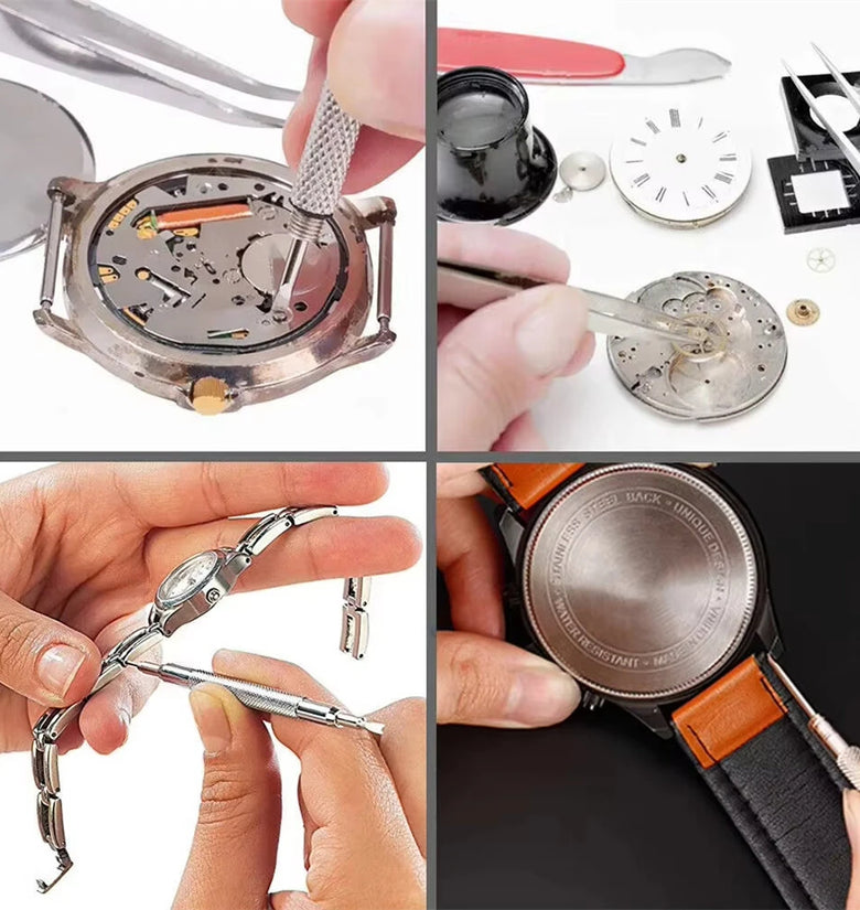 1. Maintenance and repair of mechanical watches2. This set of watch-repairing tools is packed in leather bags, which is simple and practical3. You can open the watch to change the battery, and the watch that covers the lid can be opened4. You can change the strap at will to change the length of your watch. It is an ideal choice for beginners and watch repairers!