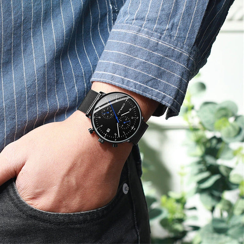 3. Mesh Band: The mesh band is not only comfortable to wear but also adds a touch of elegance to the watch.