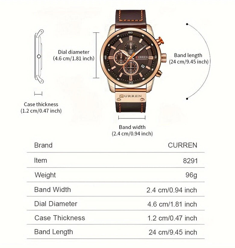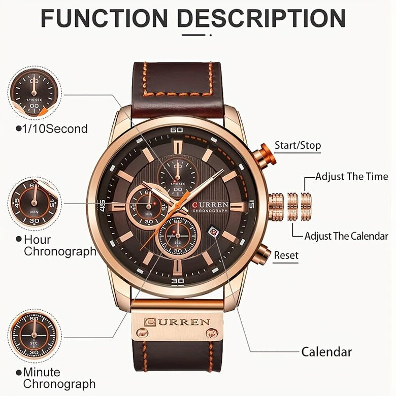 2.WATCH FUNCTION: All sub-dials and hands and are functional, Full Functional Chronograph, 30M waterproof and Date Display