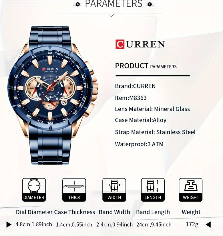 4.Multifunctional watch. All the pointers are working. This watch has a chronograph function.