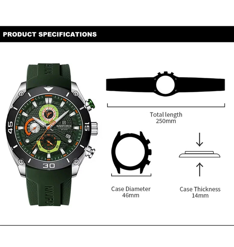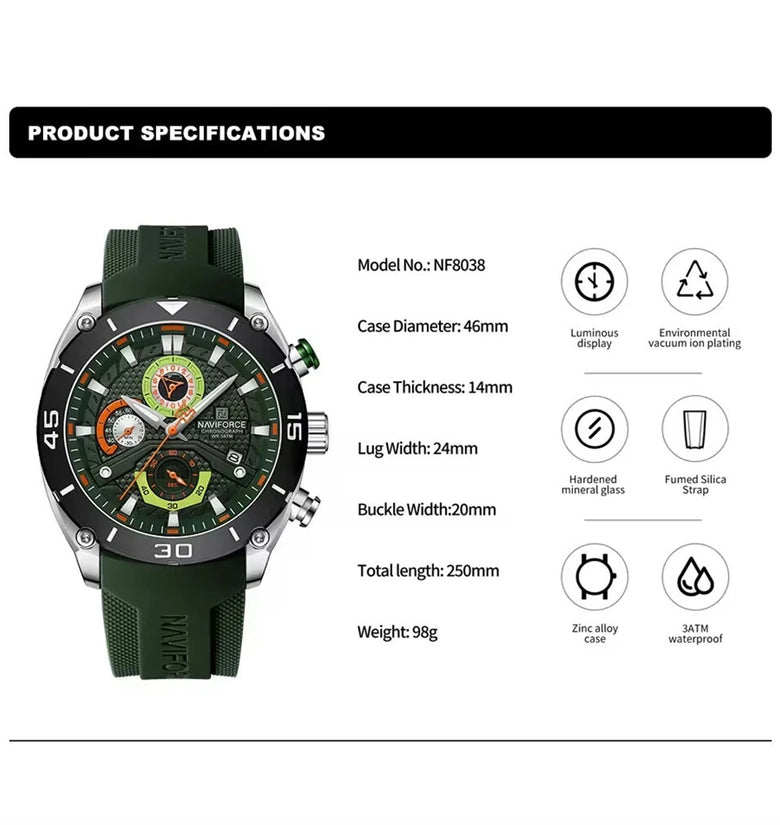 Feature: 30M Water Resistant, Date Display, Luminous hands, Analog Chronograph