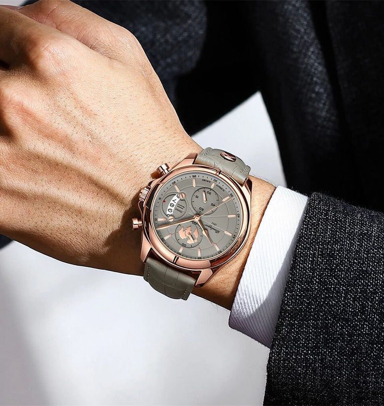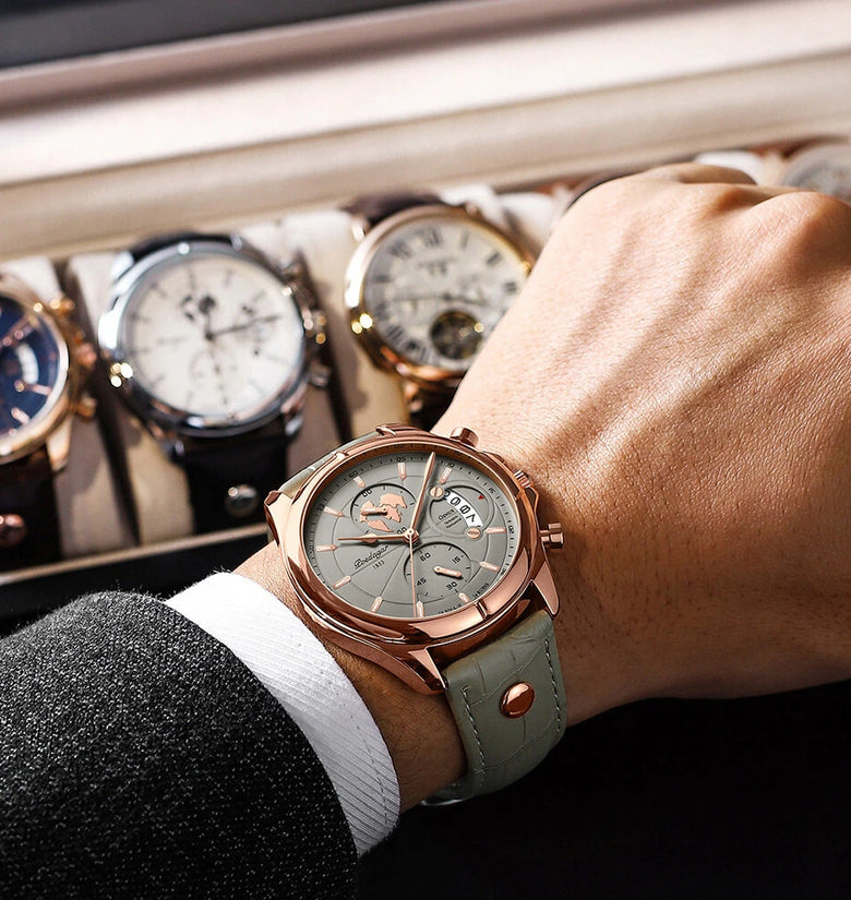 POEDAGAR Men's Waterproof Luminous Quartz Watches Fashion Multi-function Business Casual Wristwatch