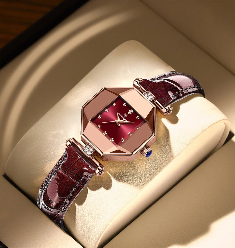 • POEDAGAR Women Watches Fashion Luxury Rhinestones Quartz Watch Polygon Pointer Waterproof Ladies Leather Wristwatch