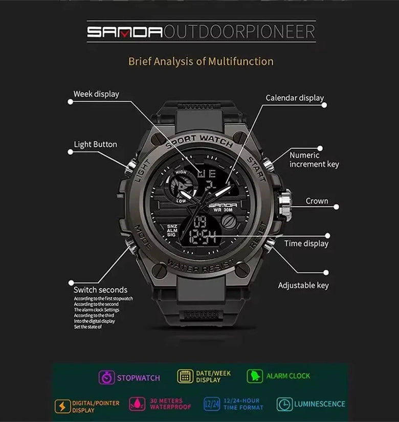 2. Multi-functional with features including stopwatch, alarm, and backlight.