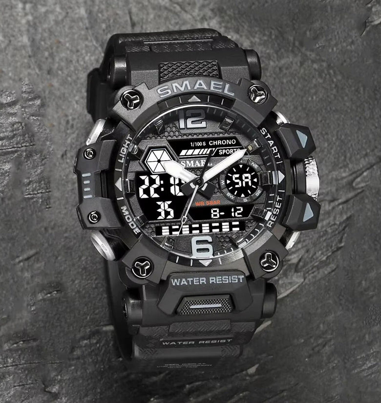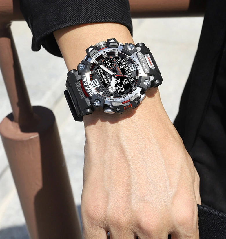 • SMAEL Men LED Luminous Waterproof Sports Digital Dual Display Watch Multifunctional Outdoor Calendar Alarm Watch