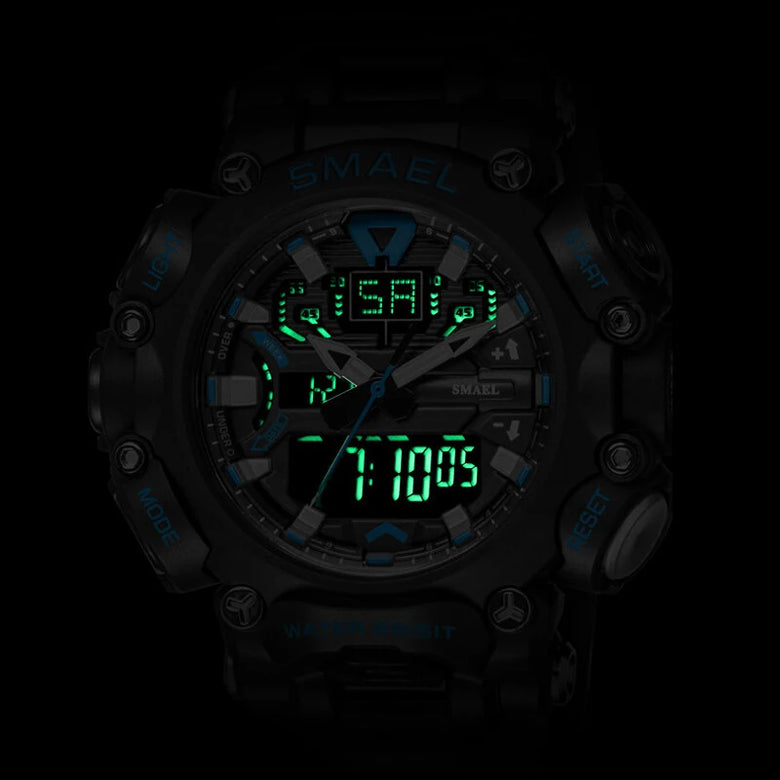 SMAEL Men Sport Digital Dual Display Watch Multi-function LED Luminous Waterproof Date Week Alarm Wristwatch