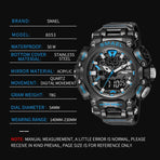 • SMAEL Men Sport Digital Dual Display Watch Multi-function LED Luminous Waterproof Date Week Alarm Wristwatch