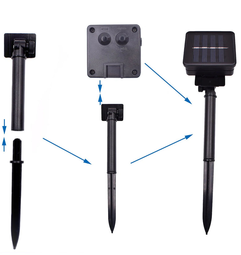 No wiring needed, powered by solar energy, Solar panels absorb sunlight can rotate 360 degrees. Solar panels can be adjusted.