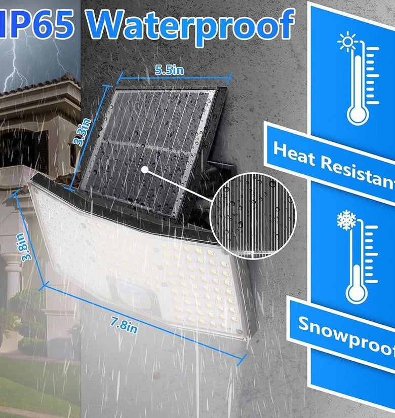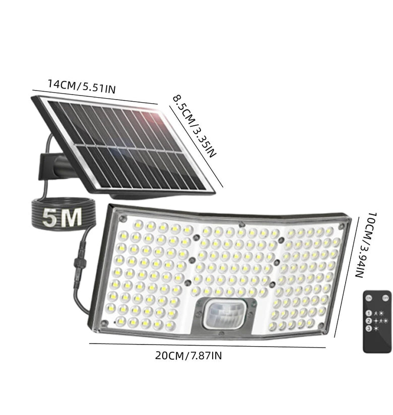 • 146LED Solar Flood Light with Motion Sensor Split Design 3 Modes Outdoor Security Lighting IP65 Waterproof Remote Control