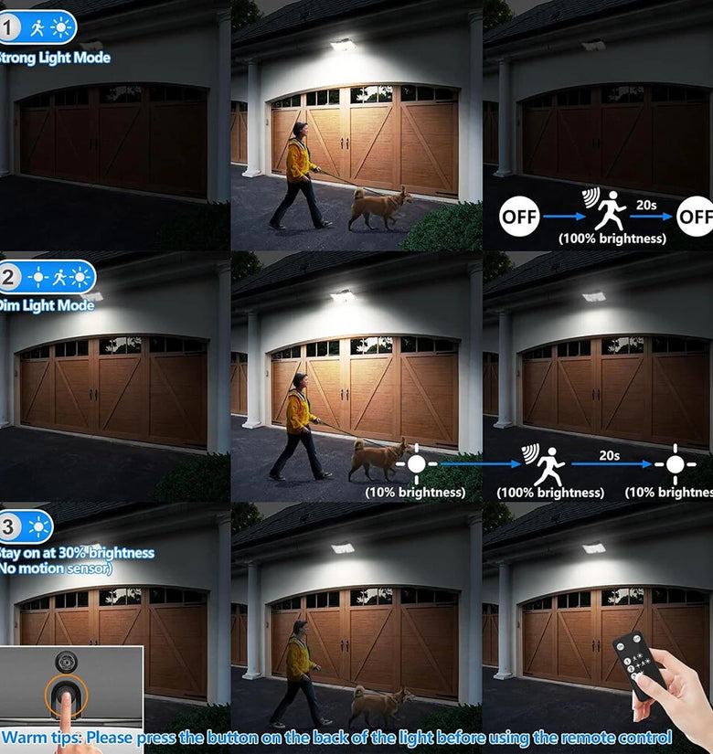 - Motion Sensor Functionality: Equipped with a sensitive motion detector, the light has a sensing range of 3-7 meters and a wide detection angle of 120 degrees. It automatically illuminates upon detecting movement, providing enhanced security and convenience.