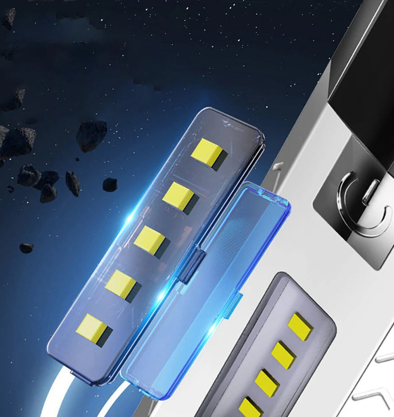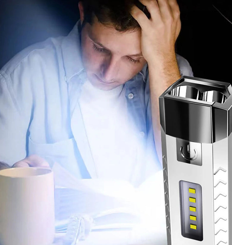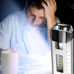 1. Multi-function flashlight with three light sources, 2 LEDs + 5 COBs super bright remote lighting, also used as a work light.