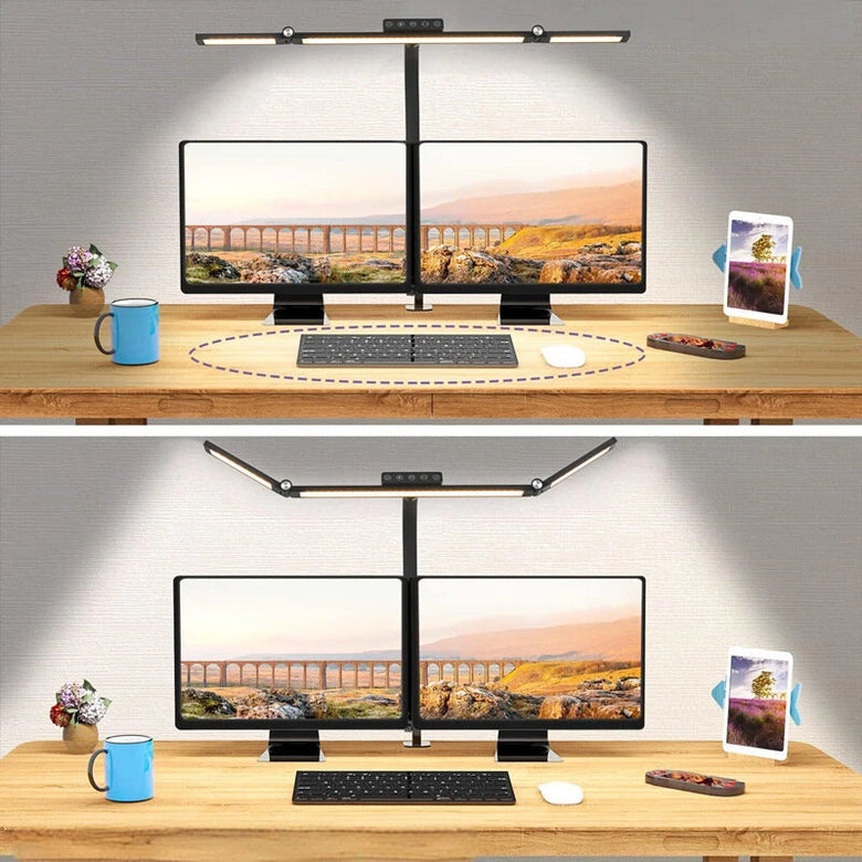 - Adjustable Brightness: The lamp offers 5 brightness levels ranging from 20% to 100%, allowing you to easily tailor the light intensity to your needs while remaining energy efficient.- Multiple Color Temperatures: With 5 color temperature settings from 3200K to 6500K, you can switch between warm and cool lighting for various tasks and moods.- Flexible Lighting Direction: Featuring a highly flexible silicone gooseneck and dual lamp heads that fold 180° upward and 45° downward, it provides precise control over light direction.- Secure and Adjustable Design: Its clamp design firmly attaches to your desk, while an adjustable height (up to 27.6 inches) and a 360° rotatable base offer a versatile setup for different workspaces.- Smart Sensor Feature: The built-in seat sensor allows the lamp to turn on with a simple hand movement, adding a layer of convenience and modern functionality.