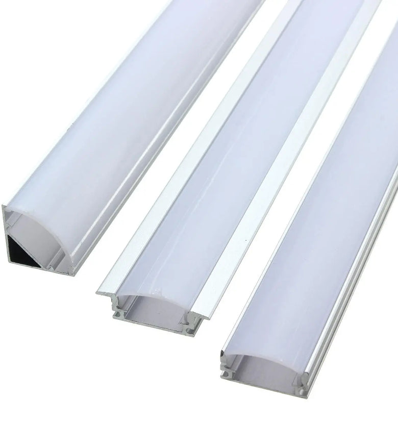 The LED U V YW -Shaped Aluminum Channel System provides a professional finish and a modern aesthetic to accommodate a wide range of LED strip lighting projects. While the aluminum channel houses and protects your LED strips from dust and physical contact, the milky/oyster white channel cover diffuses the harsh brightness of the LED lights themselves. The cover softens the 'spottiness' of LED strip lights, rendering a light that is not only more consistent but pleasing (referred to as a 'light bar' or 'neon effect). Because the adhesive backing on LED strip lights only permits one installation before losing its stickiness, housing them in LEDdrop aluminum channels instantly makes them portable. Find that perfect spot to illuminate without ever having to waste another LED strip light again.