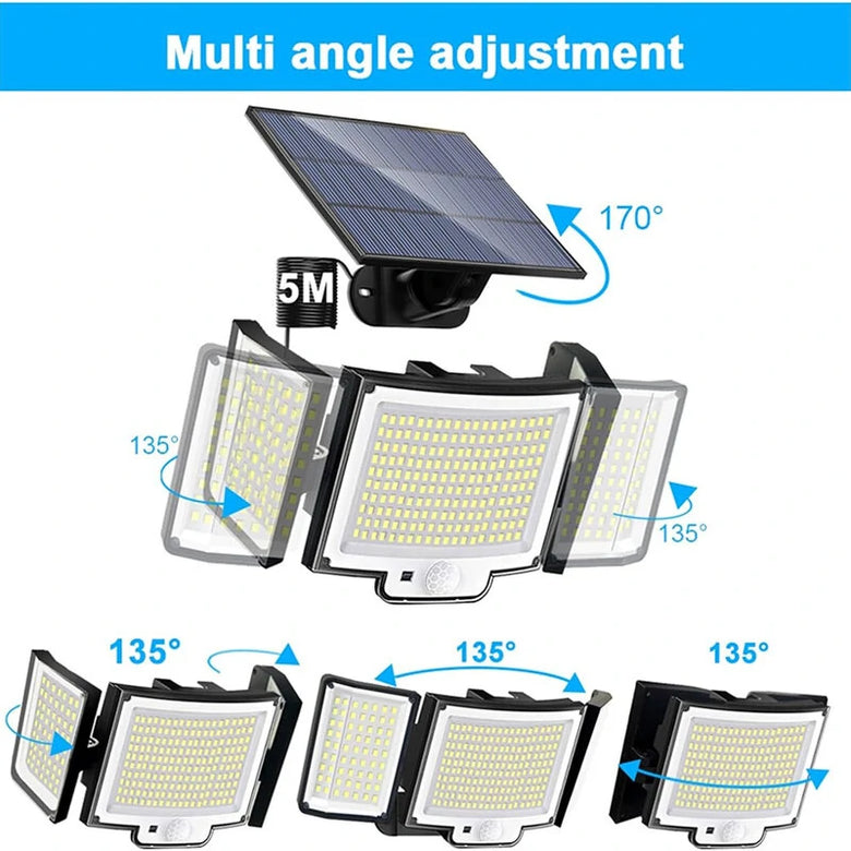 - 3 Head Design: Solar Motion Sensor Lights equipped with 328 higher efficiency and more energy-saving premium LED beads, 120°wide angle illumination, no harm to eyes and good heat dissipation. It adopts monocrystalline silicon solar panels with a conversion rate of up to 25%, provide longer and brighter lighting. Practical and environmentally friendly.