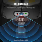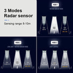 - Three Adjustable Lighting Modes: It features three adaptable working modes: Mode 1 activates strong light upon detecting motion at night for about 25 seconds. Mode 2 dims automatically at night and switches to strong light for 25 seconds when motion is detected. Mode 3 maintains medium light at night without motion sensitivity.