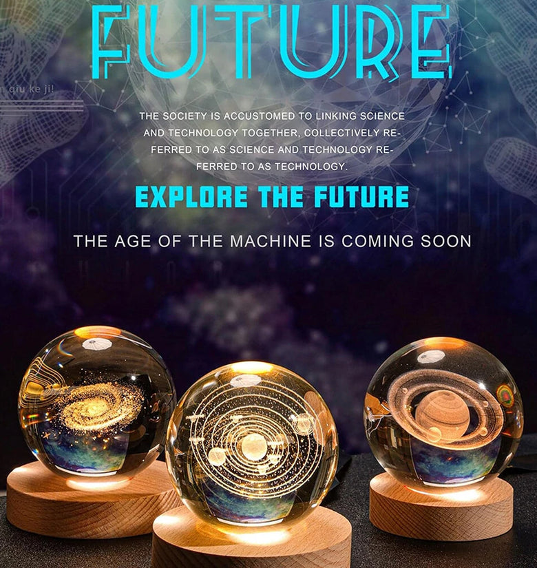• 3D Crystal Ball Night Light With Led Wooden Lamp Base Bedside Light Home Decor Christmas Gift Night Lamp