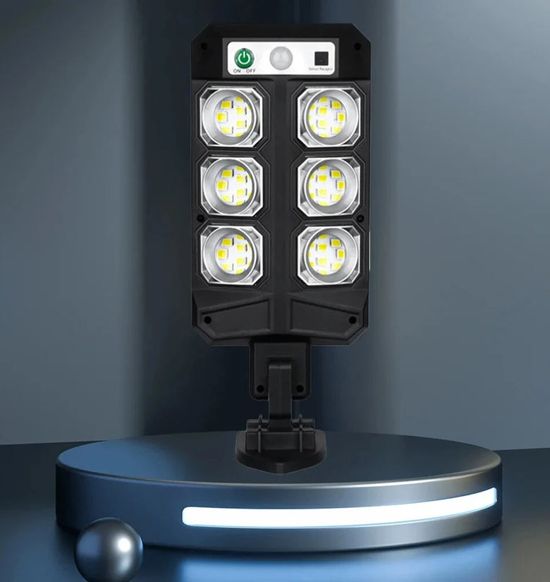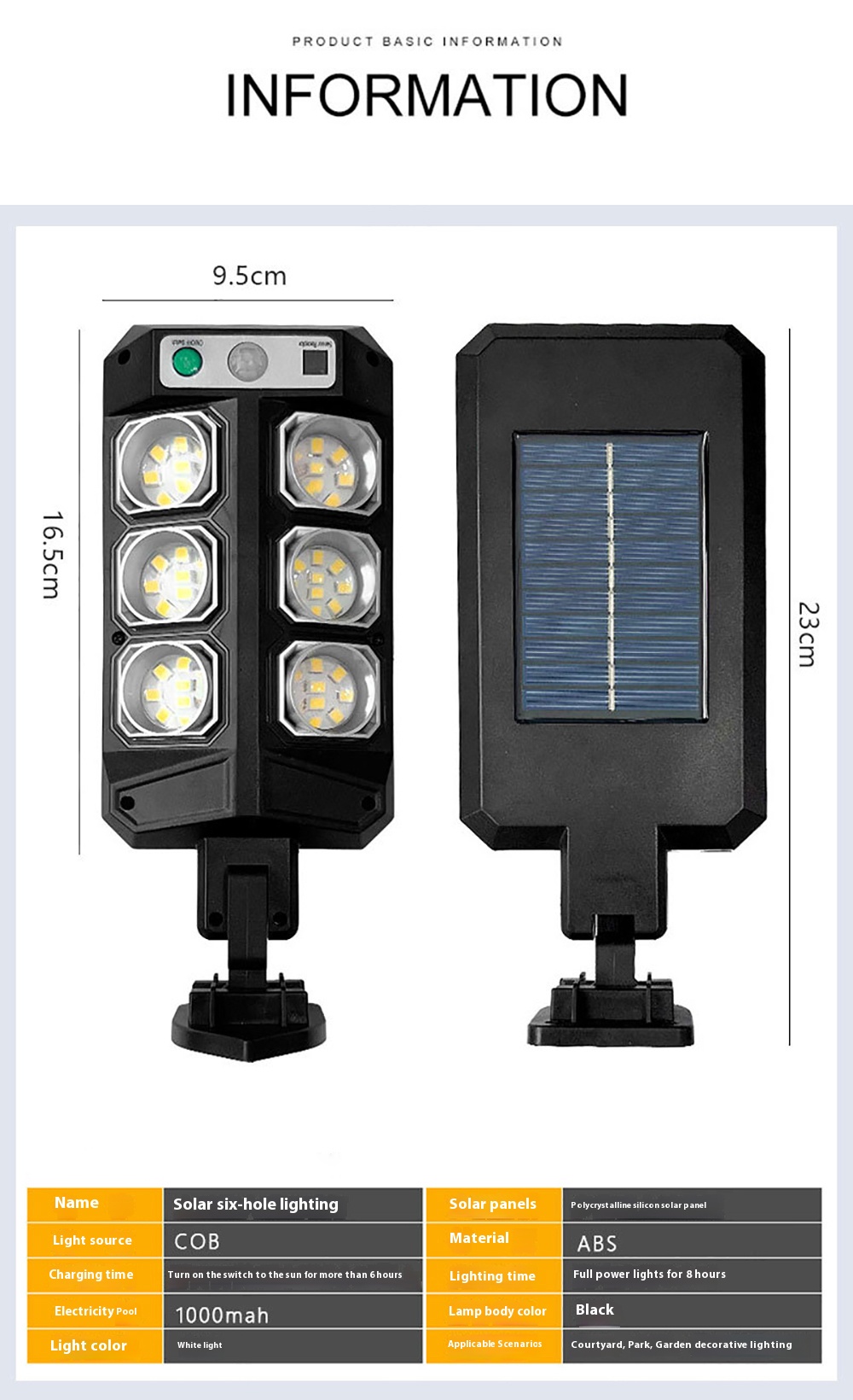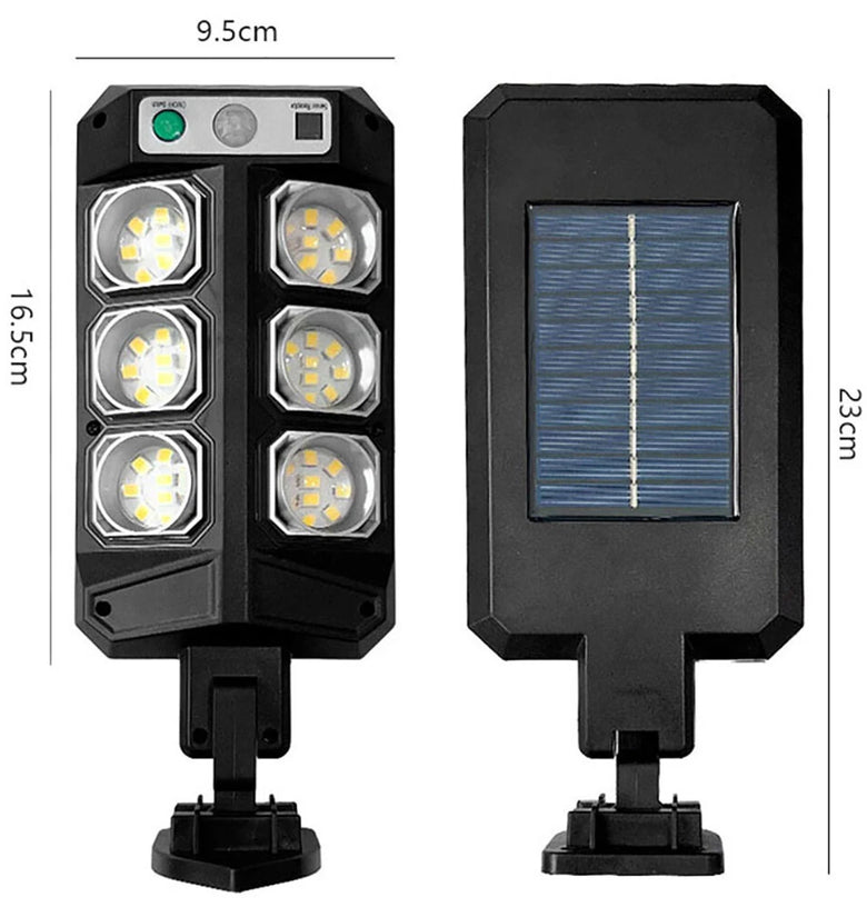 - Efficient Solar Charging: This flood light is equipped with a high-efficiency polycrystalline solar panel that ensures continuous charging during the day, providing up to 8 hours of lighting time on a full charge.