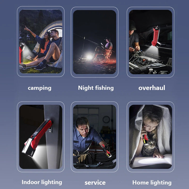 5.The LED work light is a perfect tool for camping, hiking, travelling, reading, workshop, car repair, emergency and home use etc.