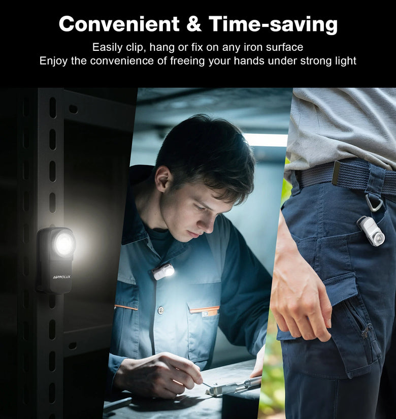 Designed for versatility, the CP01’s sturdy clip attaches securely to clothing for hands-free use. Its magnetic base sticks to metal surfaces for overhead lighting, and the lanyard hole ensures quick access whenever you need it. Always within reach, always reliable.