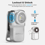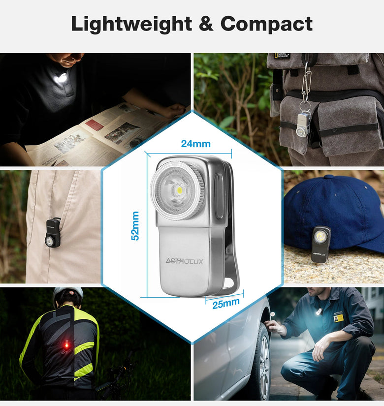 -[Lightweight and Compact] CP01 clip-on light only has 70g weight and 52mm length, it is light enough for use as a keychain light, headlamp clip on your cap, a signal tool on your backpack