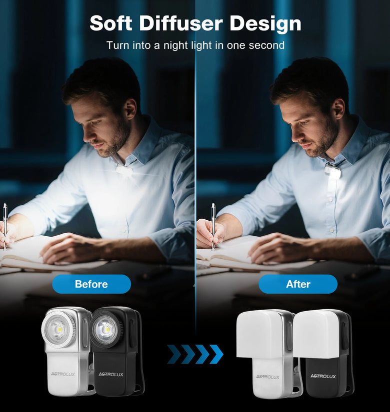 -[Multiple Ways to Carry] The versatile clip enables users to clip, hang, or magnetically attach the light to iron objects. It has extensive application scenarios, such as hiking, providing fill light for photos, cycling, reading, and safety warnings