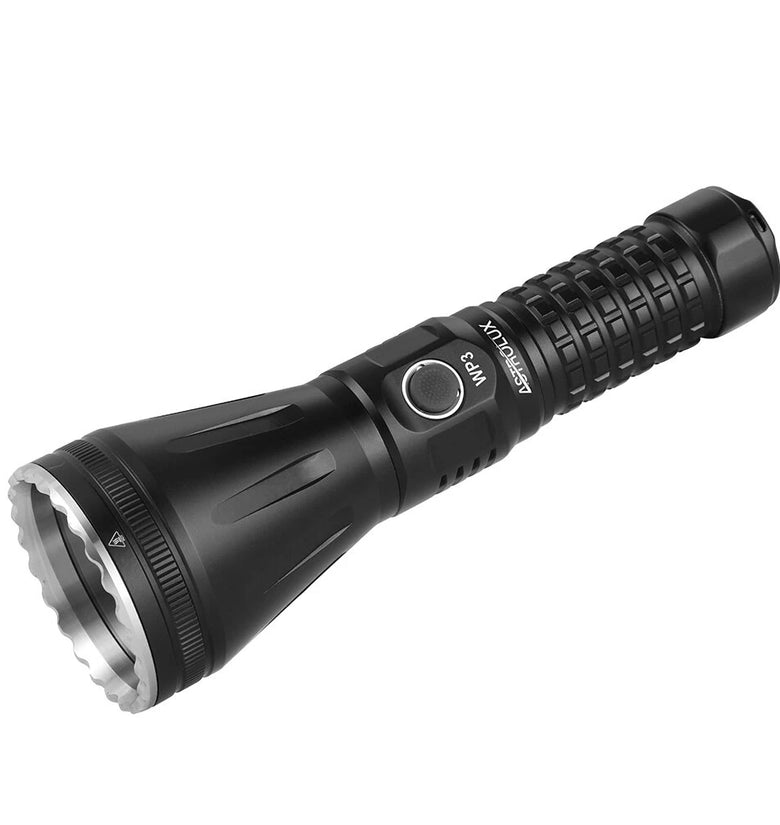 Astrolux® WP3 LEP light source has high energy density, and then passes through a special lens reflection system to form a dazzling light column. High and low brightness modes are adjustable, simple and practical. WP3 LEP search light throwing distance up to 2.9 kilometers! , Luminous flux 562 lumens, light intensity reaches 2180000 candela, comes with one 21700 rechargeable lithium ion battery, high-quality drive circuit with temperature control, constant current drive and ensure that the flashlight will not overheat. It is designed for special lighting.