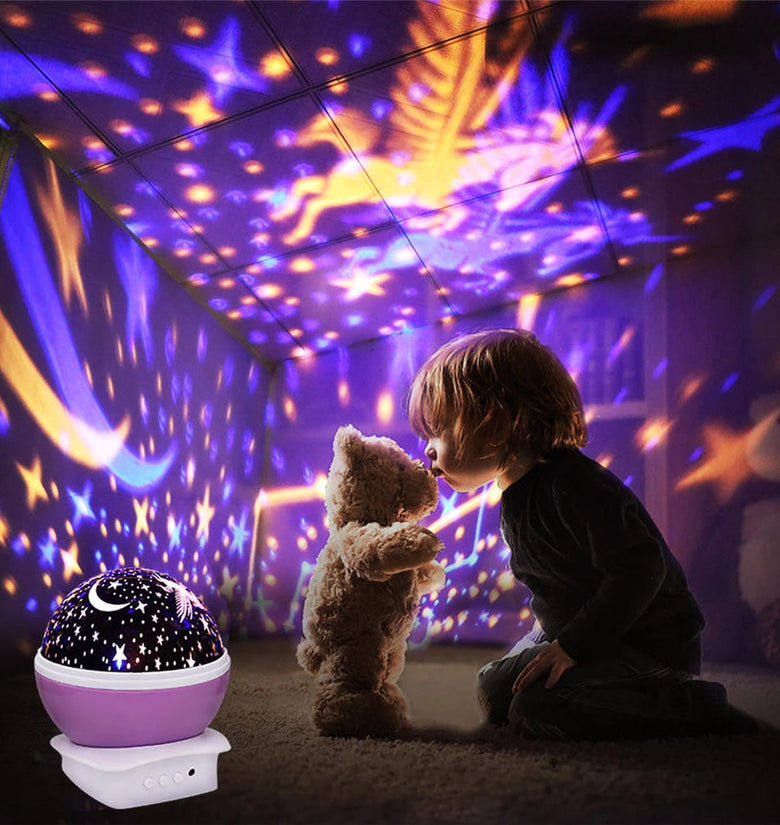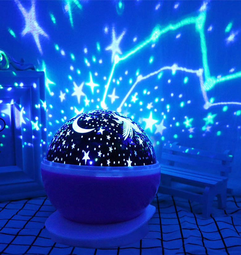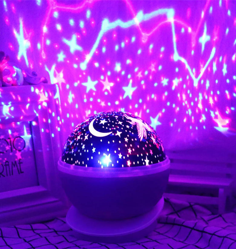 1. 6 big functions: light projection, colorful conversion, high quality motor, USB/battery power supply, silent rotation, table lamp/night light.